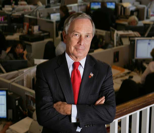 아무래도 블룸버그의 설립자로서 대중들에게 유명한 정치인이다. 하버드 MBA를 거쳤으며 살로만 브라더스에 입사하였으나 1,000만 달러의 퇴직금을 받고 해고당했다. 하지만 퇴직금으로 혁신적인 경제 뉴스 미디어 그룹인 블룸버그 LP를 창립하여 억만장자가 되었다.