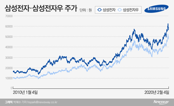 우선주는 주주총회 의결권이 없기 때문에 프리미엄만큼 싸게 평가되고, 그만큼 보통주 투자금액 대비 높은 배당을 받을 수 있다. 필자는 두가지 측면에서 개인투자자가 장기투자(최소3년) 시 삼성전자우를 매수해야한다고 생각한다.