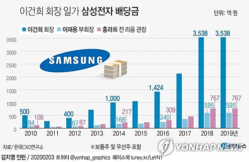 국민연금이 2010년부터 10년 간 삼성전자 지분을 보유하며 벌어들인 배당금은 3조5천7억원으로 2조원대인 이 회장 일가의 금액보다 약 1조원 더 많다.