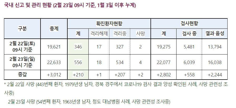 현재 우리나라는 556명의 확진자와 4명의 사망자가 기록되었다. 신천지를 통해 대구지역의 확산이 높은 상황이다.