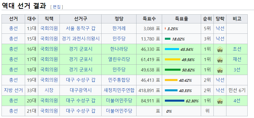 2016년 5월 30일 ~ 2020년 5월 29일 : 제20대 국회의원 (대구 수성구 갑) / 제20대 국회 기획재정위원회 위원/ 제20대 국회 예산결산특별위원회 위원