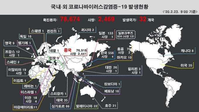 일본 133명, 일본크루즈 634명, 대만26명 등 주변 국가와 인구에 비해서 우리나라가 훨씬 높은 확산속도를 보여주고 있다.