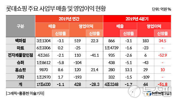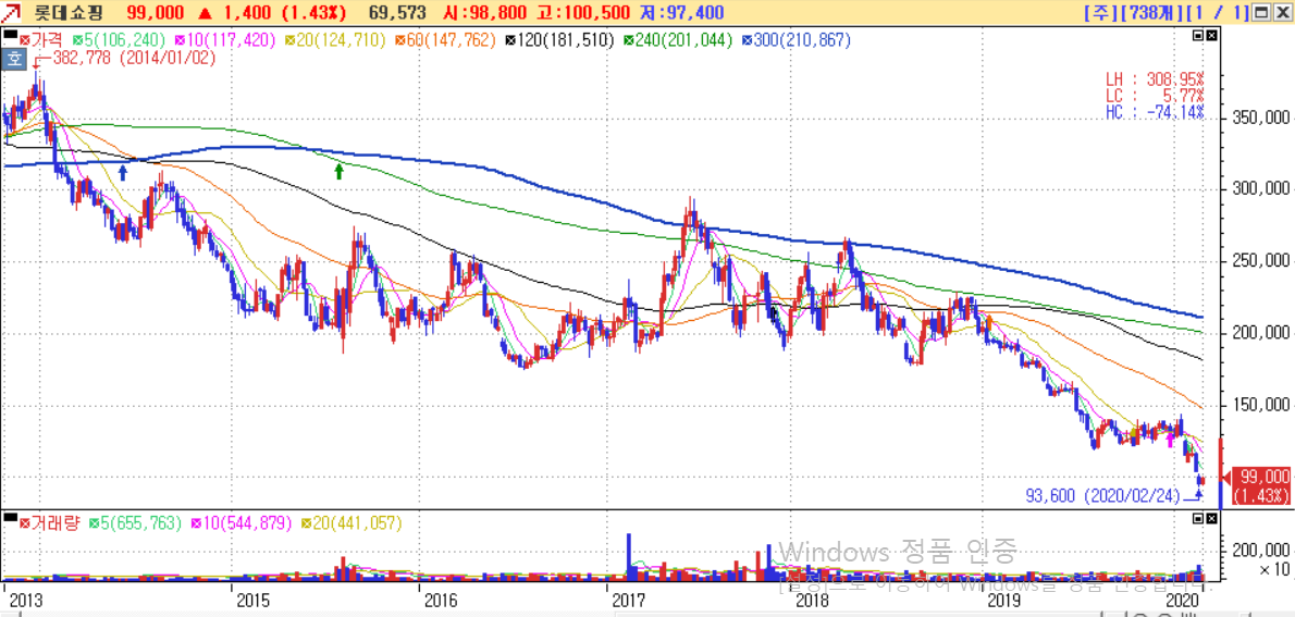 사드보복, 일본 불매운동, 우한 코로나19 등 유통업에 직격탄이 되는 사건들을 맞은 롯데는 끝없이 추락했다.