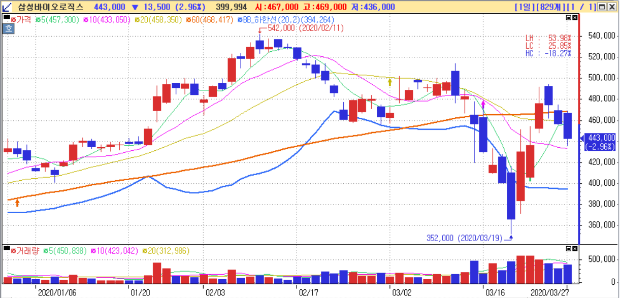 위의 차트는 삼성바이오로직스와 셀트리온의 최근 일봉이다. 2018년까지는 반도체와 바이오의 장세였다. 그리고 작년은 신라젠, 코오롱티슈진처럼 시장참여자들이 연구결과를 통해 옥석가리기가 진행되었다.