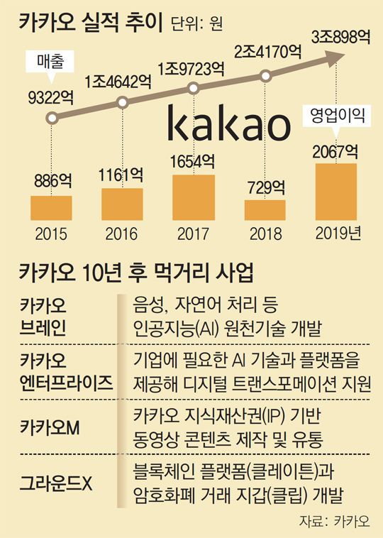 카카오브레인을 중심으로 한 인공지능(AI)과 그라운드X의 블록체인, 카카오M의 동영상, 그리고 카카오엔터프라이즈의 기업 대 기업(B2B) 비즈니스 등이다.