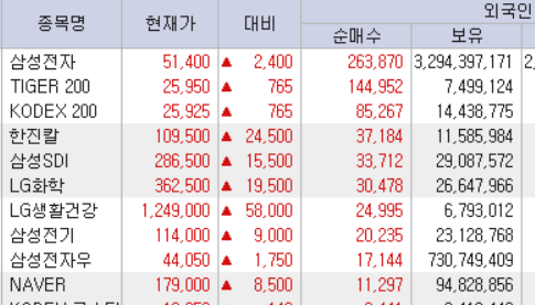삼성전자도 4% 넘게 상승을 했다. "코로나로 한동안 삼성전자 5자는 볼일이 없을 것이다"라고 호언장담하던 사람들이 민망하게된 상황이다. 삼성전자와 SK하이닉스는 외국인들에게 현금화하기 좋은 주식이다.