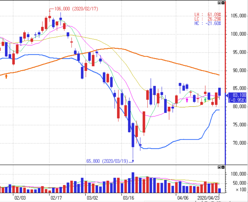 기대에 비해 가격이 하락했지만, 다른 업종에 비하여 코로나 타격이 양호하니 다행이다.