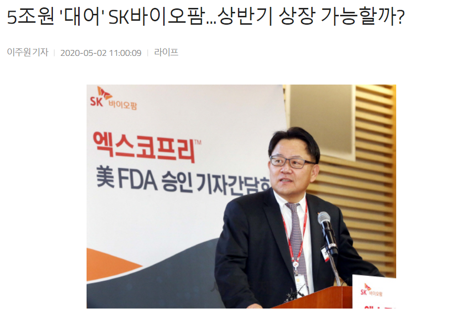 그러나 코로나가 터지면서 상장을 연기할 것이란 시각이 지배적이지만... 오히려 SK는 코로나가 난리인 지금 상장을 하는 것이 바이오로써 좋은 가치를 받을 수 있다고 평가할 것이다.