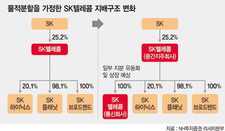박정호 SK텔레콤 사장이 지난해 3월 “머리 좋은 사람이 인적 분할을 얘기하는데 나는 생각이 다르다”고 발언한 이후, 물적분할 시나리오는 대세로 자리매김했다.