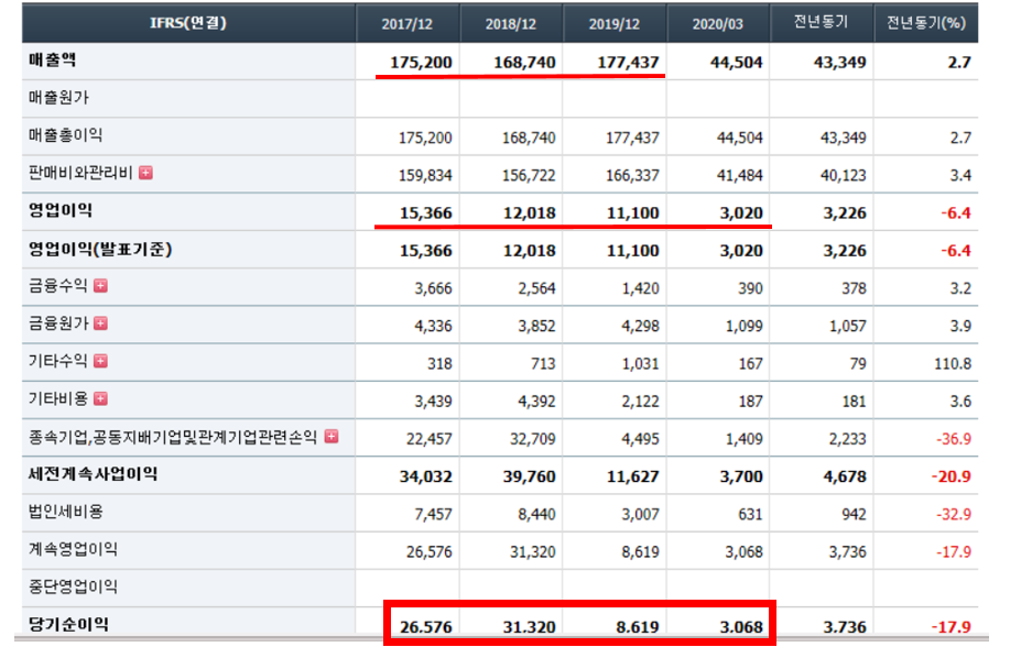 이것은 시중은행 예금의 5배가 조금 못되는 높은 수익률이다. 지금 은행주가 싸다고 무턱대고 배당수익률을 고려하여 매수하는 것과는 다른 차원의 안정적인 가격대라고 생각한다. "배당이 줄어들 수도 있지 않냐?!" 필자는 현재 배당은 최소 3년간 유지가능하다고 본다. 만일 올해 3분기부터 실적인 급격히 턴어라운드한다면 연간배당이 줄어드는 일은 크게 믿기지 않는다.