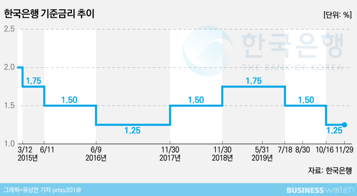 이후 10월 한번 더 미국의 속도를 맞추며 인하가 이루어졌다. 0% 대의 물가상승률에 합리적인 대응책으로 보여졌으며, 2020년 1월 10일 현재 기준으로 효과적인 결정으로 보인다.