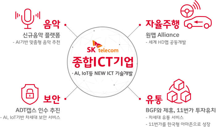 또한 통신 점유율 1위인 SK텔레콤은 카카오 못지 않게 '데이터'를 갖고 있다. T맵으로 전국의 교통정보를 갖고 있으며, OK캐쉬백으로 소비패턴에 대한 정보도 갖고 있다. 이러한 빅데이터를 갖춘 기업이 이커머스, 물리보안, IT보안 서비스까지 제공한다면 엄청난 시너지효과가 날 것이다.