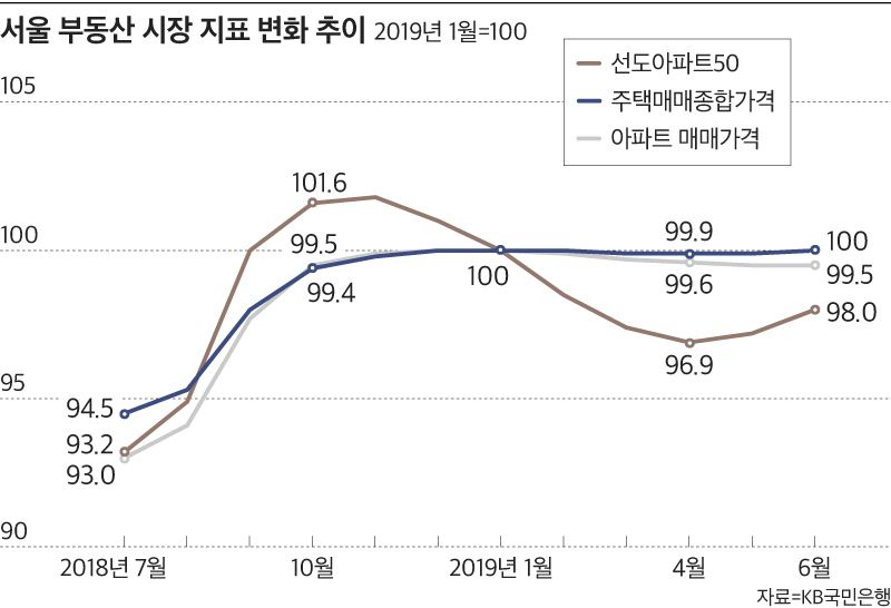 부동산에 대한 통계가 많지만, 국민은행의 위 자료를 참고하면 2018년 7월 이후로 선도아파트50, 주택매매종합가격, 아파트 매매가격은 10월까지 꾸준히 상승하였다. 선도아파트는 일부 가격조정이 있었고 지난해 6월 다시 상승했었다.