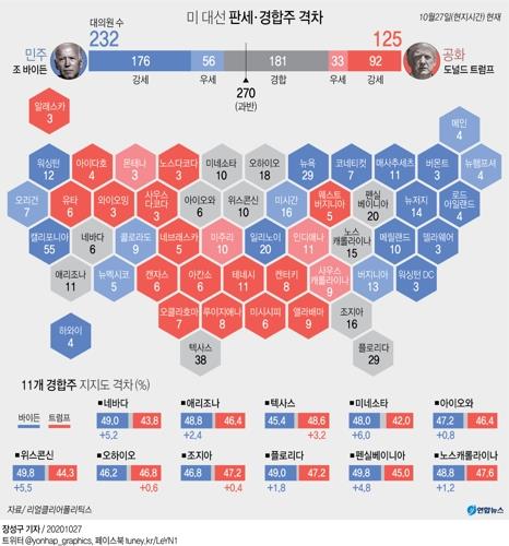 현재 일반적인 여론조사에서는 바이든의 10% 이상의 격차로 승리가 예상된다.