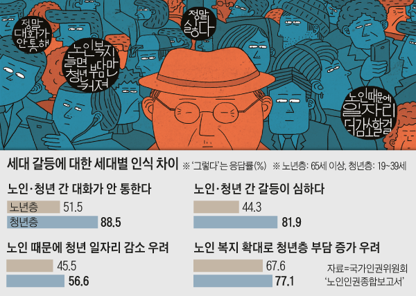 이것은 비단 노인만의 문제가 아니다. 사회의식이 성숙하지 못하니 노인들이 행패나 부리는 짐으로 인식되는 것이다. 젊은 꼰대들도 많고, 세대별로 많은 문제를 갖고 있다.