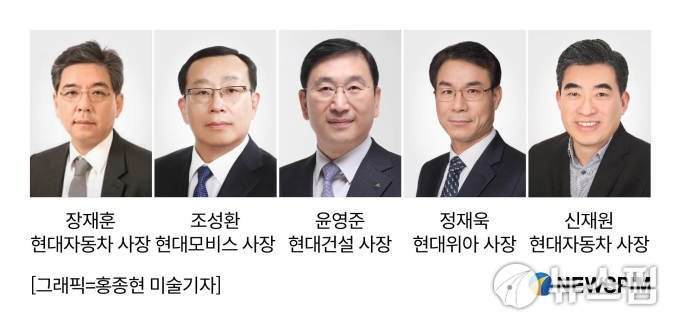 가장 중요한 현대자동차 대표이사 자리에는 그간 현대차 국내사업본부와 제네시스사업본부, 경영지원본부장을 겸직한 정재훈 부사장이 내정되었다.