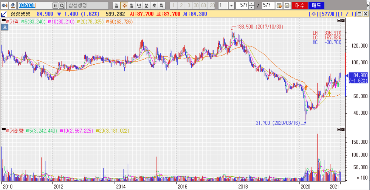 삼성생명, 삼성물산은 삼성전자의 주가상승만큼 과실을 얻지 못했다. 이러한 디스카운트가 과연 금리인상기에도 적용될 수 있을지 모르겠다.