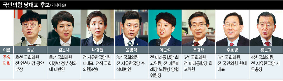 이준석 후보가 나경원, 주호영 의원 등 당대표를 노리는 선배들을 앞지르며 높은 인기를 누리고 있다.