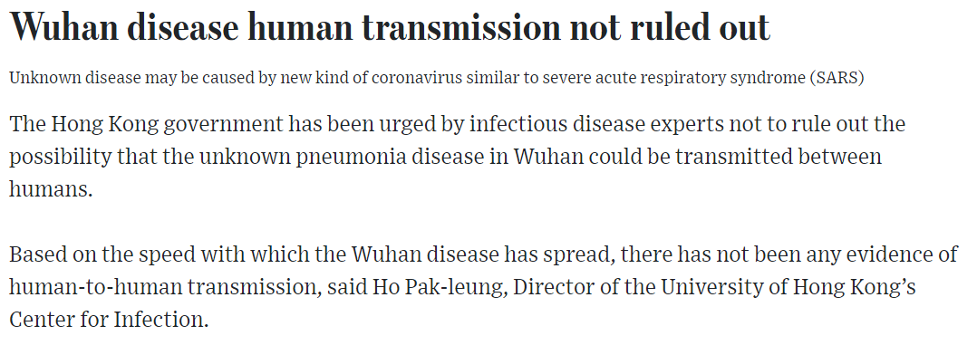 위의 기사는 홍콩 뉴스의 우한 폐렴 관련 기사이다. 중국 보건당국은 인간을 통한 전염가능성이 없다고 발표했다. 얼핏 나타난 전염경로만 보아도 인간을 통한 전이로 보이는데 ㅡㅡ;