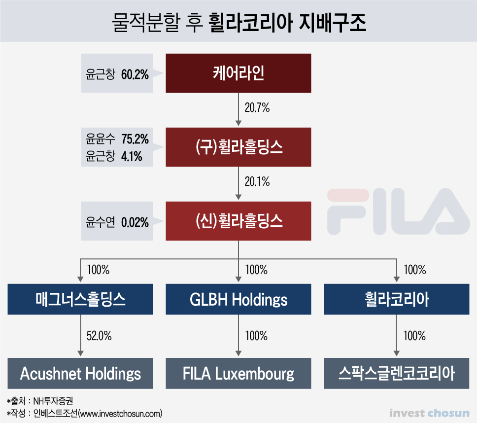 휠라코리아가 최근 물적분할을 했다. 휠라코리아가 휠라홀딩스(존속)-휠라코리아(신설법인) 구조로 분리되고, 휠라홀딩스는 상장을 유지하고, 휠라코리아는 비상장으로 전환하는 구조이다.
