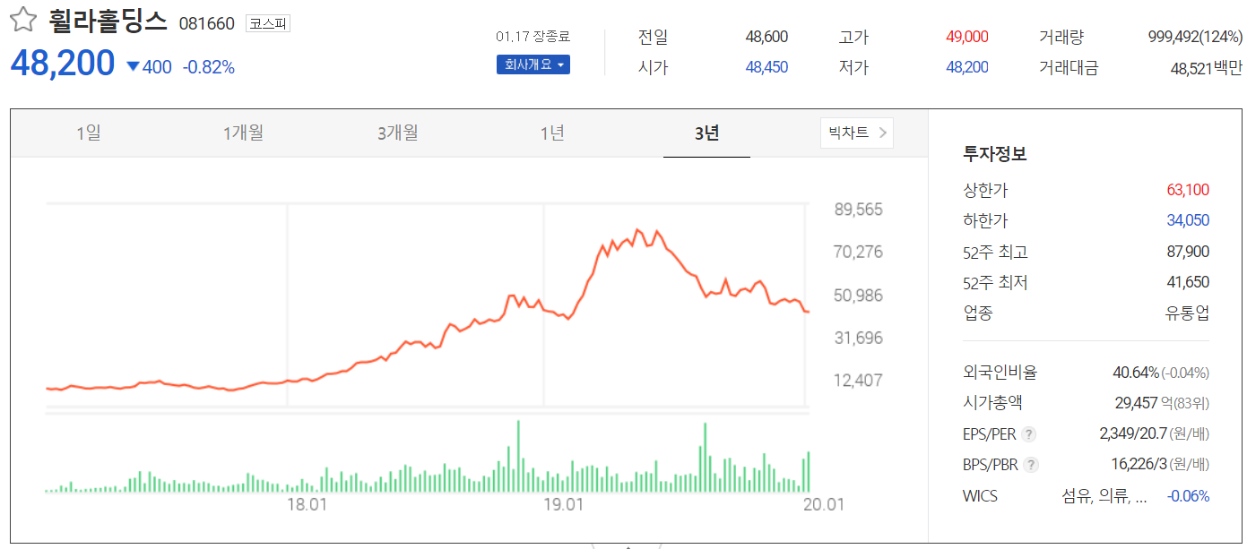 오늘은 휠라홀딩스(휠라코리아)를 포스팅하겠다.
