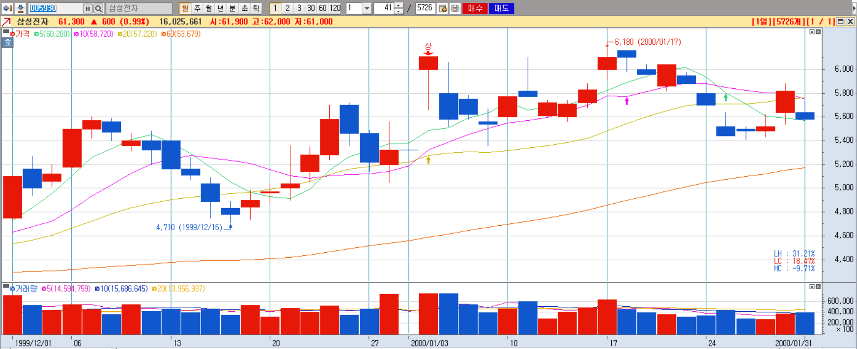 2000년, 2005년, 2010년, 2015년의 첫 거래일 종가를 기준으로 작성하겠다. 차트는 일봉이며 액면분할 후 가격으로 표시하겠다.. 아래에는 삼성전자에 대한 간략한 역사를 정리해두었으니, 읽어볼 독자들은 참고하길 바란다.