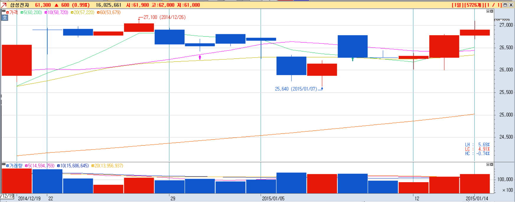 과거 5년 주기 삼성전자 새해 첫 종가 가격