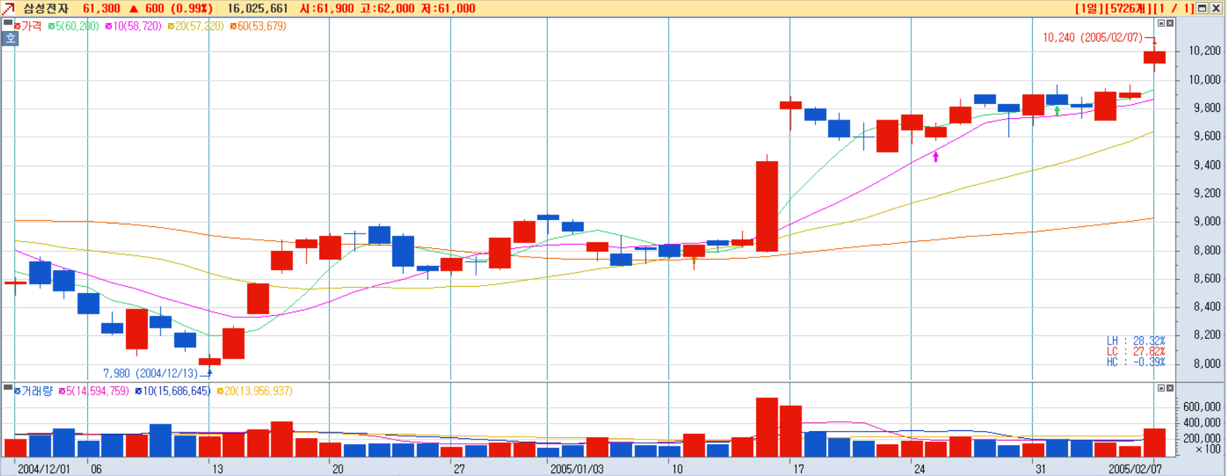 잡설이 길었으니 본격적으로 과거 삼성전자의 주가를 알아보자