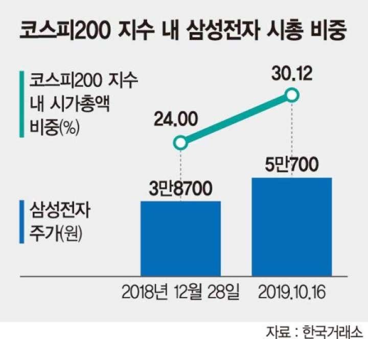 사실 삼성전자가 시가총액 1위로서 코스피 비중이 큰 것은 우려할만한 상황이긴하다.
