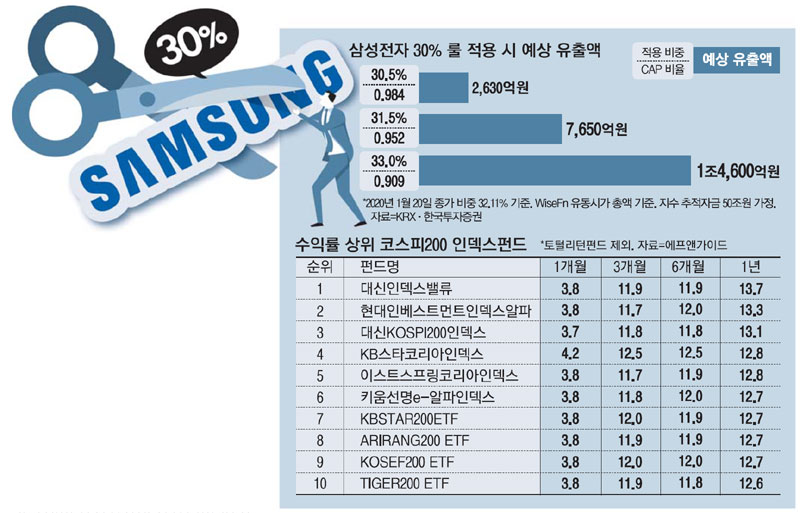 ETF의 경우 30% 제한을 이행하고 있기 때문에, 코스피200을 추종하여도 이미 삼성전자의 비중 내에서 운용중이기 때문에 큰 매도가 나올 가능성은 적은 것으로 보인다.