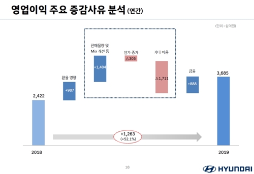 그럼에도 불구하고 현대차가 좋은 실적을 거둔 이유는 신차와 SUV가 포인트였다. 위 사진에 3번째 차틀르 보면 판매물량 및 MIX 개선(SUV, 고급차 등 고수익 차종확대)으로 이익이 늘어났고, 환율의 영향으로 9870억원의 영업이익이 늘어났다.