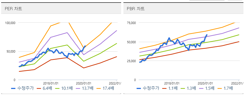 최근의 삼성전자의 주가상승도 지난 2016년 3분기의 실적하락에도 불구하고 꾸준히 주가가 상승했던 것과 비슷한 구간으로 보인다. 하지만 필자는 PBR밴드, PBR밴드의 밸류에이션을 많이보는데, 지금 주가상승을 믿고 쉽게 매수하기는 어렵다는 생각이 든다. 대략 PER 10배, PBR 1.67배정도인데 작년 11월 정도만 되어도 역사적 부담구간은 아니었지만, 당장 2분기부터 실적개선의 기대감이 줄어든다면 어려워질 수도 있지 않을까...?