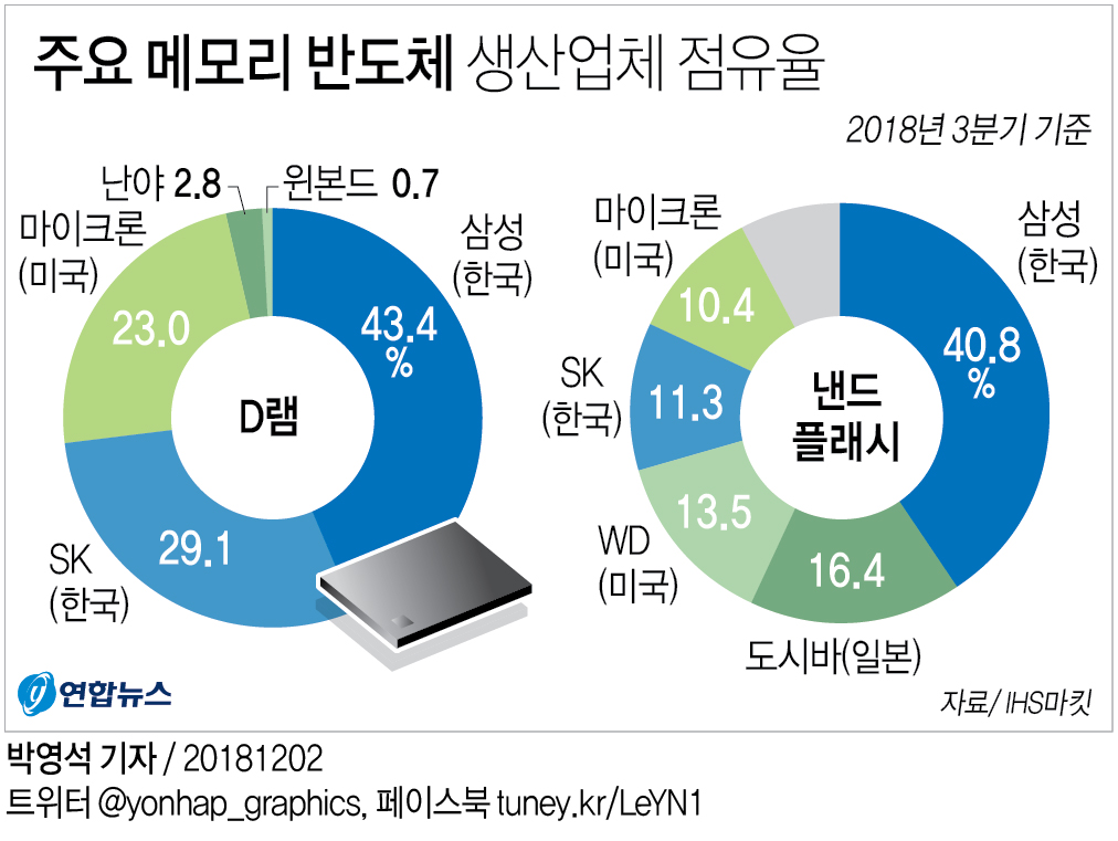 위의 표를 보면 삼성전자가 43%, SK하이닉스가 29%, 마이크론이 23%를 나눠갖는다. 여기서 파이를 더 늘릴 수 있을지 의문이들고, 또한 파이를 늘린다고하더라도 영업이익의 감소가 따르지않을까 생각한다. 현재 3개의 회사로 나눠져 있는 점유율대로 시장을 갖고가되, 기술력을 통해 영업이익을 개선시키는 것이 중요한 포인트일 것 같다.
