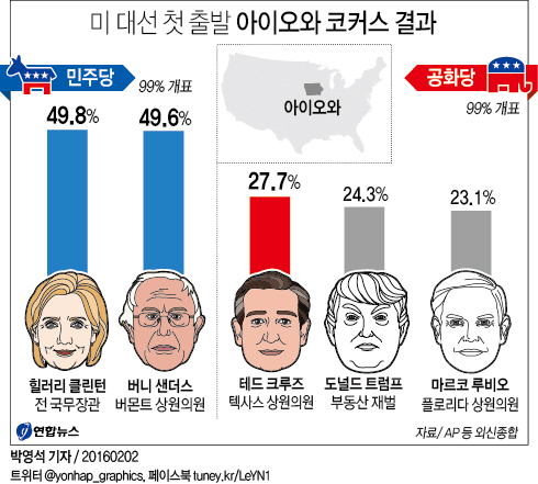 그러나 아이오와 코커스가 기성 정치인들보다 정치 신인들이 대세를 형성하는 역사가 있기 때문에 그런 정치적 아웃사이더들의 반란을 기대해보는 것도 관전포인트라고 생각한다.