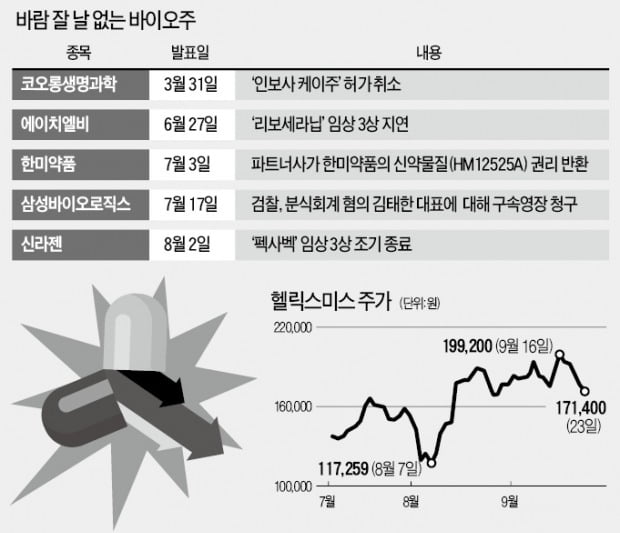 바이오업계의 구원투수로서 헬릭스미스에 대한 시장의 신뢰는 두터웠다. 그러나 작년 9월 글로벌 임상 3상에서 고배를 마셨다. 헬릭스미스 김선영 대표는 작년 9월 기업설명회를 열어서 이번 사태에 대한 해명을 진행했지만, 주가하락을 방어하기엔 역부족이었다.