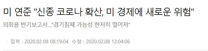 미국 연방준비제도이사회의 의장인 제롬 파월이 오는 11~12일 청문회가 예정이다. 하원과 상원의 상임위에서 경제와 통화정책에 관한 브리핑을 발표할 것이다. 이와 관련해서 신종 코로나 바이러스의 경제적 파급효과 및 미국의 의사결정에 관해 포스팅을 해보겠다.