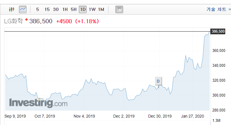 오늘은 LG화학의 주가에 대해서 다뤄보겠다. 최근 테슬라의 급격한 상승으로 국내시장에서 관련주들의 상승이 코스피를 주도했다. 결론부터 말하자면 필자는 LG화학의 주가가 고평가라고 생각한다. 그렇기에 단기적 투기를 위한 주가매입에는 반대한다. 하지만 아래에서 다룰 성장성 측면에서 주식포트폴리오에 반드시 편입해야되는 산업이라고 생각한다. '장기 성장성'이 중요한 포인트다. 항상 부탁한다. "마켓타이밍을 맞추려고 노력하지마라"