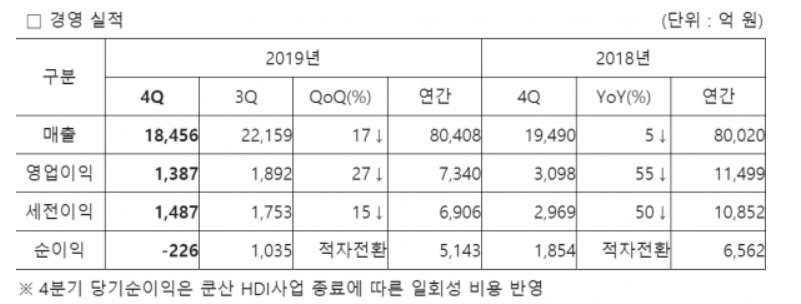 전 분기 대비 매출은 3,703억 원(17%), 영업이익은 505억(27%) 감소한 수치다. 또, 전년 동기 대비 매출액은 1,034억 원으로 5% 감소, 영업이익은 1,711억 원으로 55%나 급감했다.