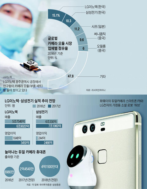 그러면 올해는 어떨까? 앞에서 말한 것처럼 삼성전기의 실적전환에 대한 기대감이 시장에 퍼져있다. 5G 이동통신시장을 겨냥한 MLCC공급을 확대하고 있고 스마트폰 카메라의 고성능화에 따른 카메라, 통신모듈의 수요가 증가할 것으로 보이기 때문이다. 한편 OLED용 경연성 인쇄회로기판(RFPCB) 고객 다변화도 준비하고 있다.